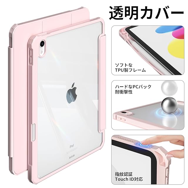 zoyu iPad 11世代 ケース A16 2025 /iPad 10世代 専用 ケース 2022 10.9 インチ ipad 第11/10世代 カバー アクリル クリア 透明バックカバー ペンシル収納 Pencil2収納可能 Touch ID 対応 自動ウェイク/スリープ 三つ折りスタンド薄型 軽量 耐衝撃 ソフトTPU A2696 A2757 A2777 ピンク | TREND DESIGN 家電専門店