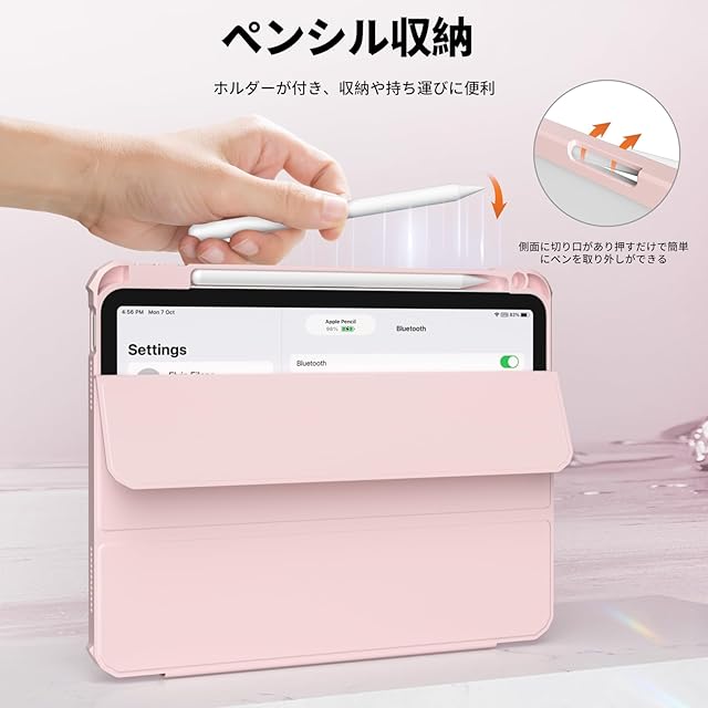 ペンシルホルダー: Apple Pencilホルダー内蔵で、ペンシルの出し入れが便利。外出時にペンを紛失したり損傷したりするのを防ぎます。(注: Apple Pencilは付属していません)