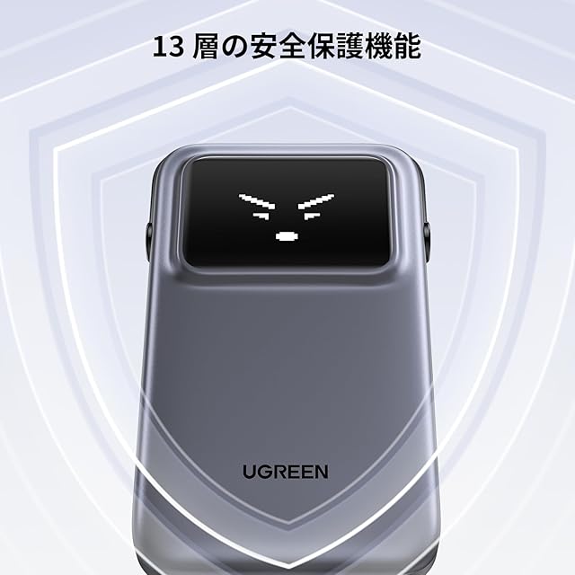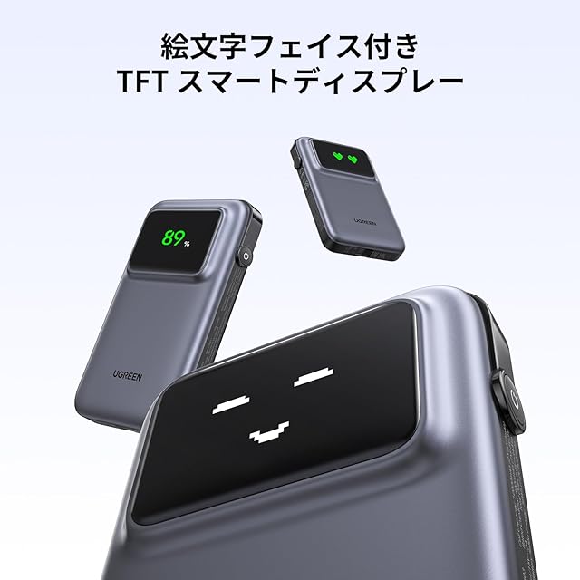 商品名:UGREEN Uno モバイルバッテリー (Built-In USB-Cケーブル 10000mAh 30W) PD急速充電対応 3ポート TFTスクリーン ロボット形デザイン パススルー機能 低電流モード搭載 USB-Cケーブル一体型 PSE技術基準適合 iPhone iPad Android Galaxy スマホ タブレット iWatch airpods pro その他 PB511 メタリック