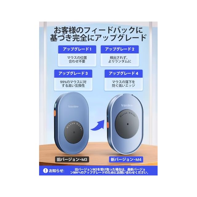 商品名:VAYDEER マウスジグラー 検出不能 マウスムーバー 自動 動かす 物理的 Mouse Jiggler Mover、ON/OFFスイッチ付き ドライバーフリー 、PCラップトップをアクティブに維持/在宅勤務をする/生産性向上用 家族/友人/同僚/誕生日/クリスマスプレゼント(ブルー)