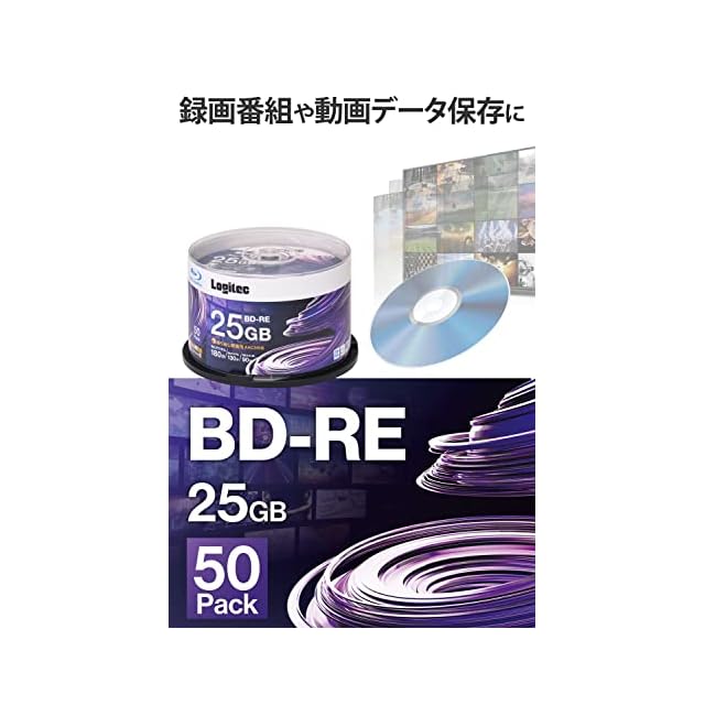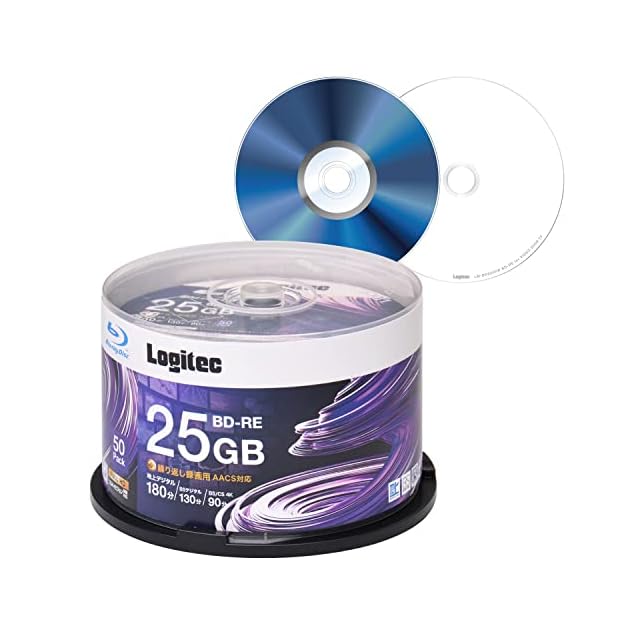商品名:ロジテック BD-RE AACS対応 ブルーレイディスク Blu-ray Disc 2倍速 くり返し録画用 記録用 25GB 記録メディア スピンドルケース 50枚入り LM-BRE25VWS50W