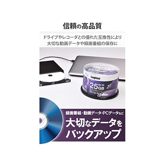 ロジテック BD-RE AACS対応 ブルーレイディスク Blu-ray Disc 2倍速 くり返し録画用 記録用 25GB 記録メディア スピンドルケース 50枚入り LM-BRE25VWS50W | TREND DESIGN 家電専門店