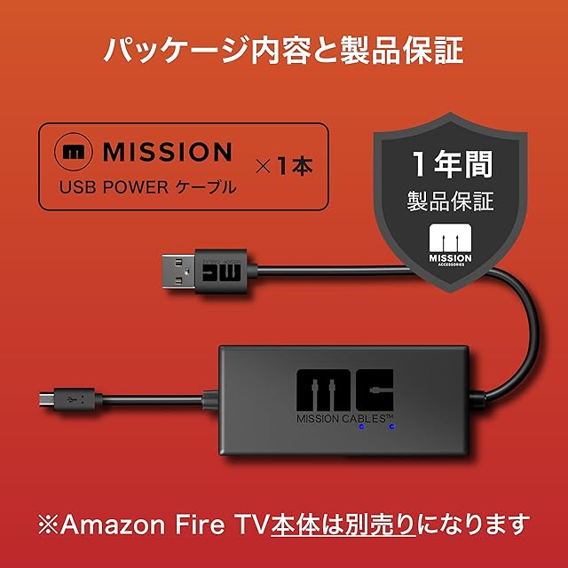 Fire TV Stick 4K /4K Max 対応 本体なし Mission Cables USBポートから スッキリ配線で美しく テレビ裏がキレイに 車内/プロジェクター/壁掛けテレビに使用可能