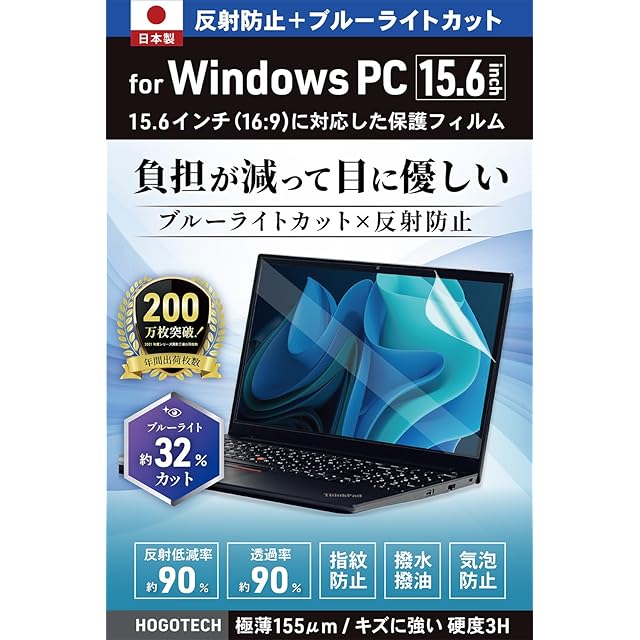 商品名:【日本製】ブルーライトカット アンチグレア Windows15.6インチ 16:9 保護フィルム 縦 194mm × 横 344mm 反射防止 気泡防止 HOGOTECH