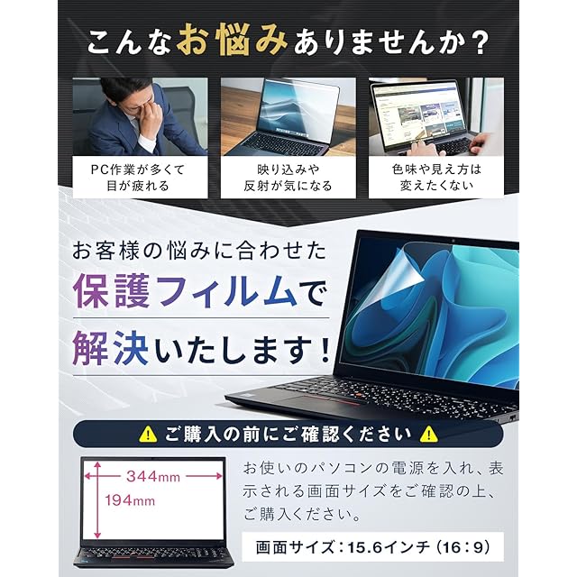 【対応機種】Windows15.6インチ 16:9(縦 194mm × 横 344mm)