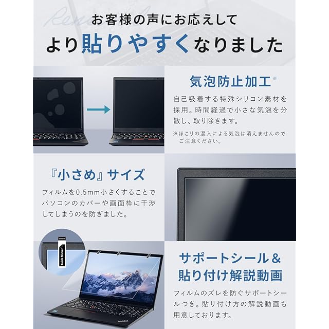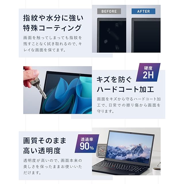 画質そのまま高い透明度:透明度が高いので、画面本来の美しさを保ったままお使いいただけます。