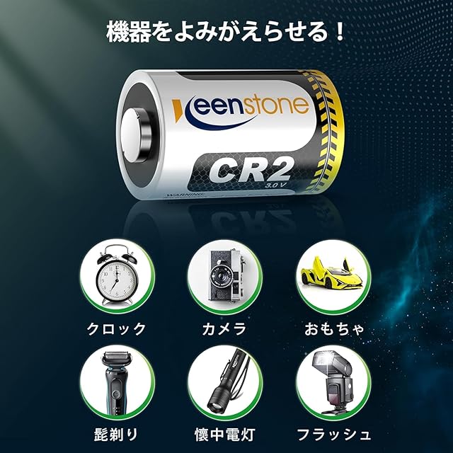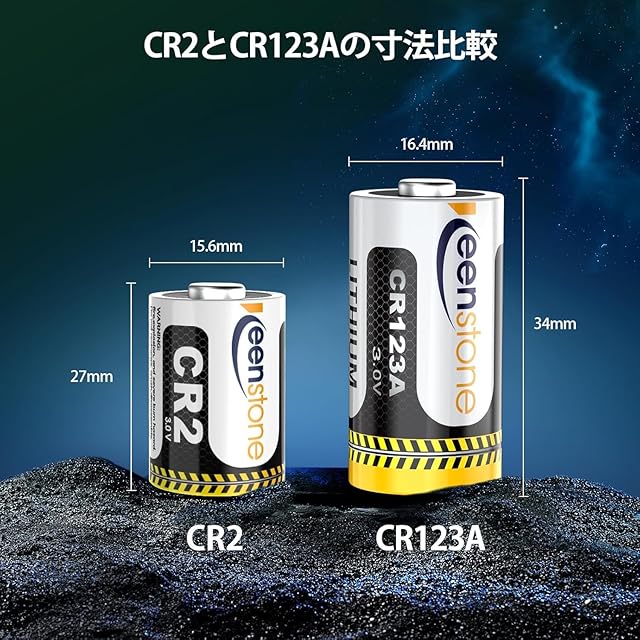 【交換可能】これらの電池と交換可能:1CR2, 5046LC, CR15H270, CR17355, DLCR2, EL1CR2, KCR2, RLCR2-2。