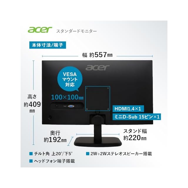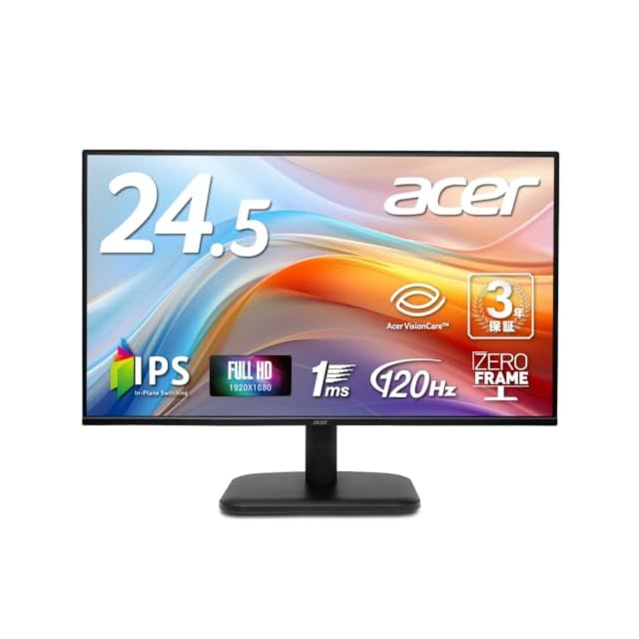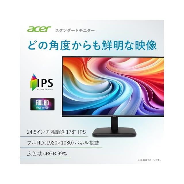 商品名:Acer モニター 24.5インチ フルHD 非光沢 IPS 120Hz 1ms(VRB) sRGB 99% AdaptiveSync HDMI 1.4 ミニD-Sub 15ピン スピーカー・ヘッドフォン端子搭載 VESAマウント対応 ゼロフレームデザイン 3年(パネルは1年) EK251QGbmix