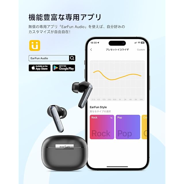 【55msの低遅延ゲームモード】ゲームモードを搭載し、最大55ms(0.055秒)の低遅延を実現しました。EarFunアプリに接続したうえで、ゲームモードに切り替えてストレスなく低遅延でゲームを楽しむことができます。【認証】世界最大規模の認証企業、SGSからRoHS、CA65、CE、FCC、TELECやPSE、工事設計認証など、各認証を取得しました。また、欧州連合のRoHS適合で人体と環境に優しい素材を採用しており、安全性と機能性を両立させたイヤホンです。