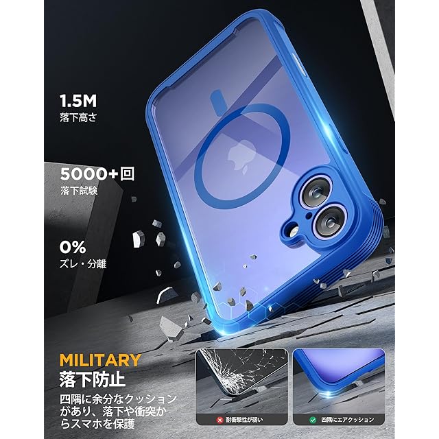 商品名:Miracase iPhone16 ケース MagSafe対応 スマホケース いPhone16 用 カバー 9H 強化ガラス 360°保護 全身バンパー保護ケース 6.1インチ フルカバー ワイヤレス充電対応 マグセーフ対応 マグネット搭載 群青
