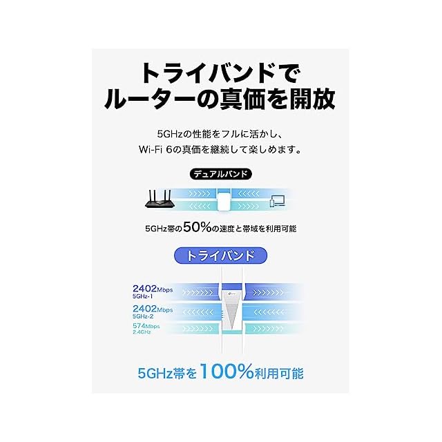 [特徴] Wi-Fi6 AX5400規格 トライバンド 無線LAN中継機。