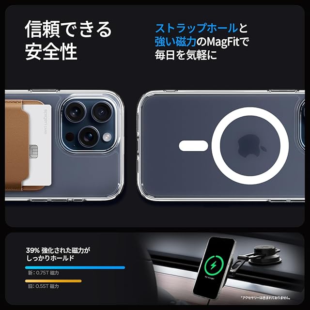 【MagSafe機能 対応】 バックパネルにマグネットが内蔵されており、MagSafe対応充電器および各種MagSafe専用アクセサリーが誤差なくくっつきます。