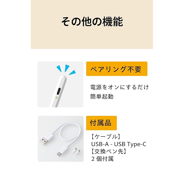 商品名:エレコム タッチぺン スタイラスペン 【iPad/iPhone/Android スマホ・タブレット各種対応】 iPad ペンシル 急速充電 30分でフル充電 マグネット吸着可能 タイプc充電 (汎用タッチペン) P-TPACST05WWH
