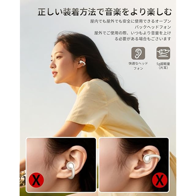 高度な指向性オーディオ技術 - 音漏れの低減: 最先端の指向性オーディオ技術を活用し、イヤホンは音を耳の穴に正確に導きます。これにより、よりクリアで詳細な音質が実現されるだけでなく、ワイヤレスオープンバック Bluetooth ヘッドフォンからの音漏れも最小限に抑えられ、よりプライベートなリスニング環境が実現します。静かな図書館や共有ワークスペースにいる場合でも、骨伝導ヘッドホンを使用すれば、周囲の人に迷惑をかけずに音楽を楽しんだり、電話をかけたりすることができます。