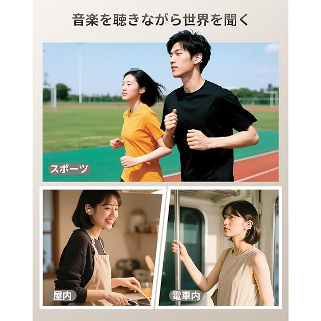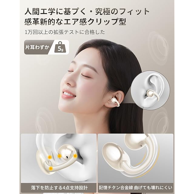 商品名:2025新潮流 イヤーカフ イヤホン Hi-Fi音質 音漏れ防止 Bluetooth5.4 オープンイヤーヘッドホン 軽量約5g IPX5防水 耳挟み式 骨伝導の革新 人間工学設計 快適装着感 iOS/Android対応 で長時間使用可能 通勤/学校/スポーツ/ゲーム/仕事