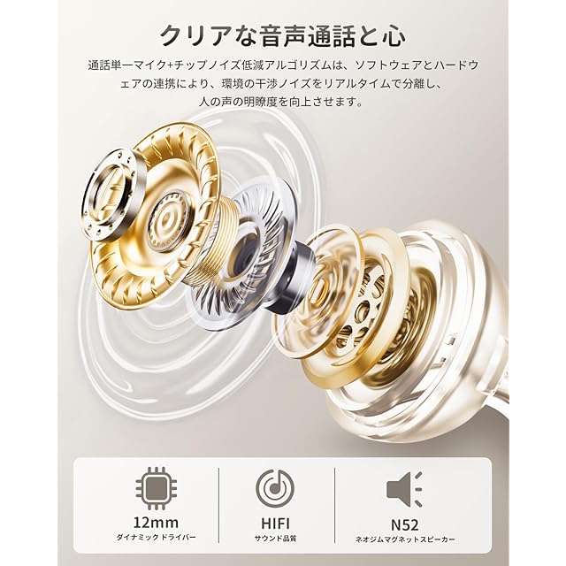 12mmダイナミックドライバーとENCコール:12mmドライバーと高感度デュアルマグネティックダイアフラムにより、深みのある低音からクリアな高音まで幅広いサウンドを提供します。マイクにはENCノイズ低減機能があり、周囲のノイズを低減し、クリアな通話音声を確保できます。臨場感あふれるサウンドと高品質な通話性能は、音楽鑑賞やビジネスシーンに最適です。