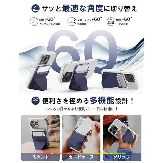 MOFT スマホスタンド 【MOVAS™ 耐久&磁力強化版】 Snap-On iPhone 16 iPhone 15 iPhone14 iPhone13 iPhone12 MagSafe対応 傷や汚れに強い マグネット カードケース 最大2枚収納 iPhoneスタンド Pro Plus ProMax 磁石 磁気吸着 薄型軽量 折り畳み式 ミニマリスト サステナブル (ディープブルー) | TREND DESIGN 家電専門店