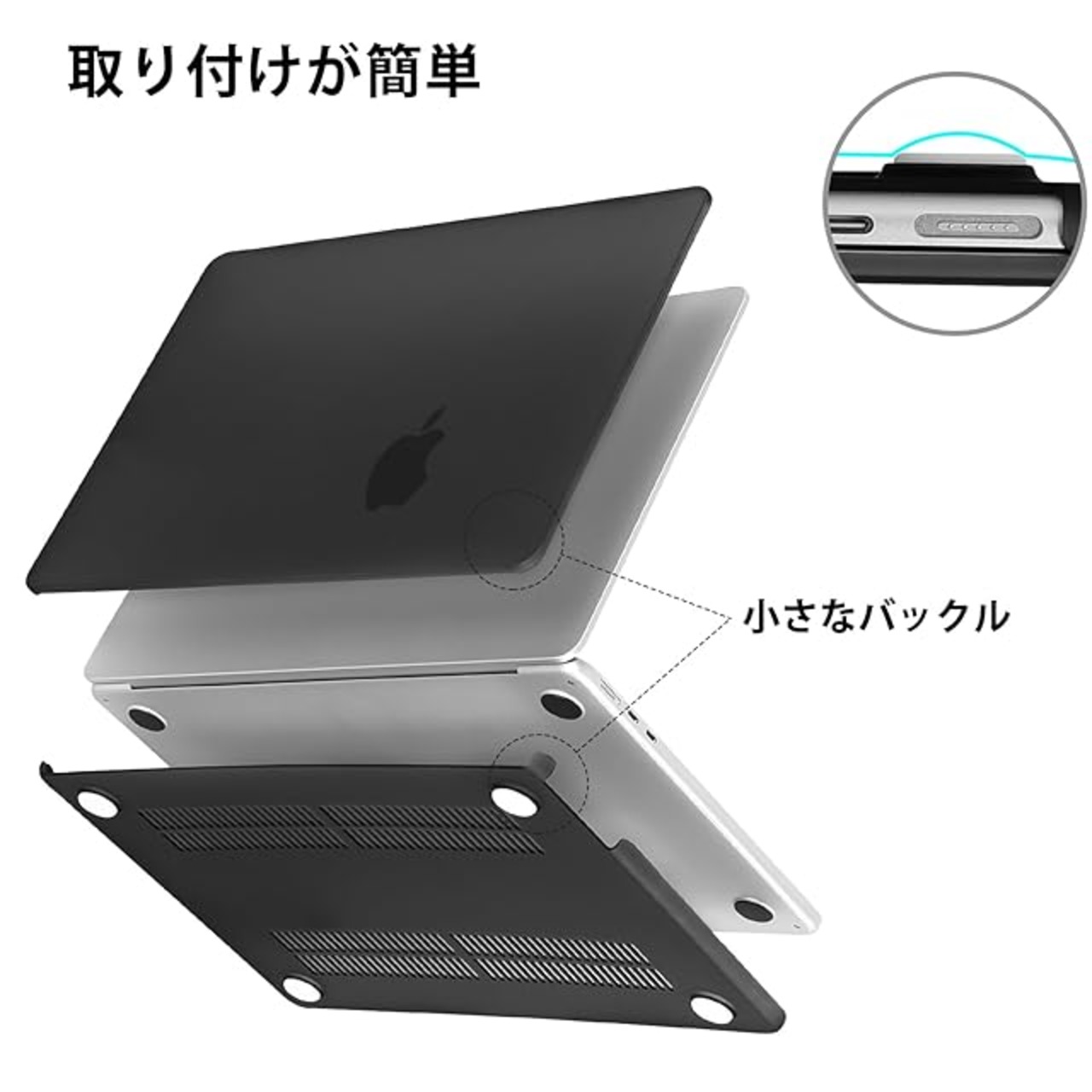 クリスタルクリアなデザイン:高い透明度を誇るこのケースは、MacBookのオリジナルカラーとロゴを際立たせます。光沢のある外観が、MacBookをさらにスタイリッシュで高級感のあるものにします