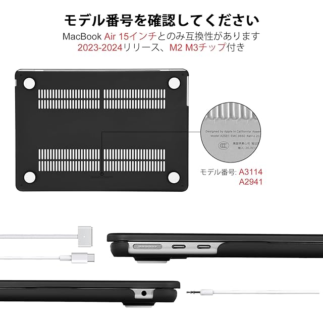商品名:EooCoo対応2025 MacBook Air 15インチケース M4 M3 M2 チップ 付き 2024 2023リリース A3114 A2941 カバー - マットブラック