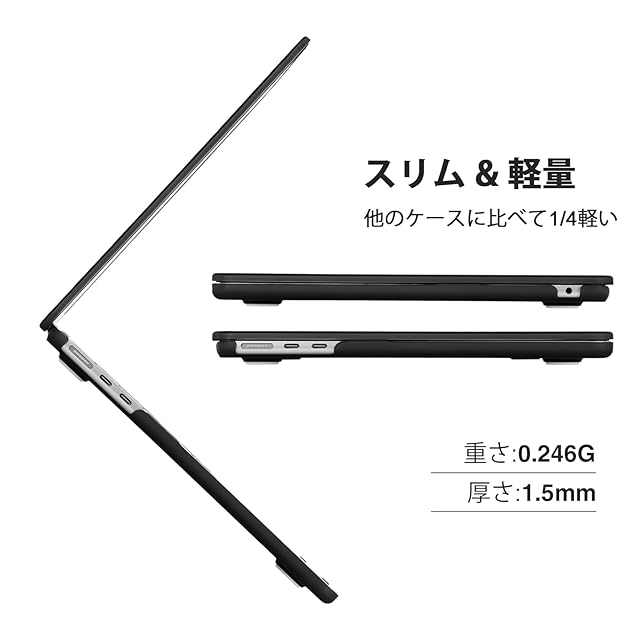 透明で薄型の保護ケース:このケースは、15インチMacBook Air 2023 2024 2025年発売 15インチM2、M3 M4チップ(モデル番号:A2941 A3114)専用です。軽量: 210g; 厚さ: 1.5MM。高品質なポリカーボネート素材を使用しており、傷や凹み、日常的な摩耗からノートパソコンを保護し、再販時の価値を守ります