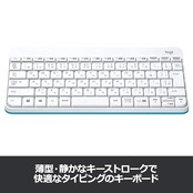 ミニマリストレイアウトには小さいスペースにすべてのキーが搭載されているため、同梱のコンパクトマウスの使用に十分な空間ができます。統合されたティルトレッグによって、お好きな傾斜で快適にタイピングができます。小型構造のこのセットは、子供でも簡単に使用することができます。