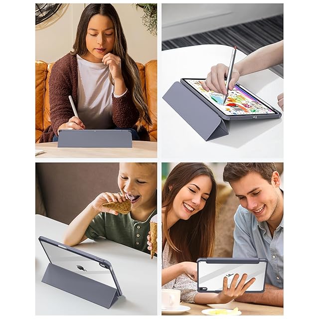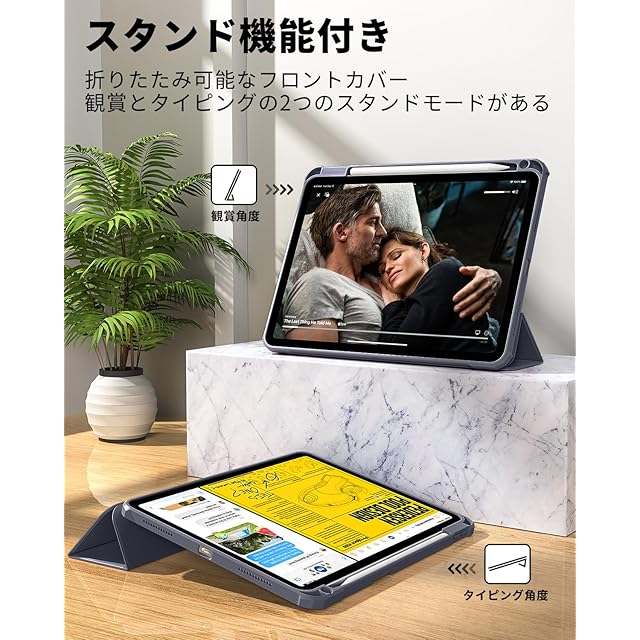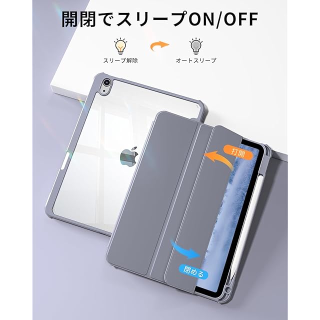 SQBEBS iPad 11世代 ケース A16 (2025) iPad 第11/10世代 10.9インチ (2022) 透明バックカバー ペンシルホルダー付き 三つ折りスタンド Touch IDとオートスリープ機能対応 軽量 薄型 傷つけ防止 PU合成レザー TPU グレーブルー | TREND DESIGN 家電専門店