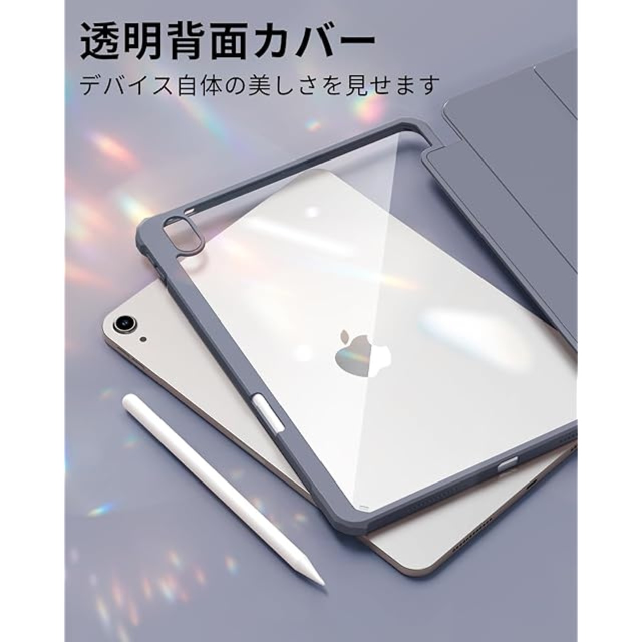 商品名:SQBEBS iPad 11世代 ケース A16 (2025) iPad 第11/10世代 10.9インチ (2022) 透明バックカバー ペンシルホルダー付き 三つ折りスタンド Touch IDとオートスリープ機能対応 軽量 薄型 傷つけ防止 PU合成レザー TPU グレーブルー