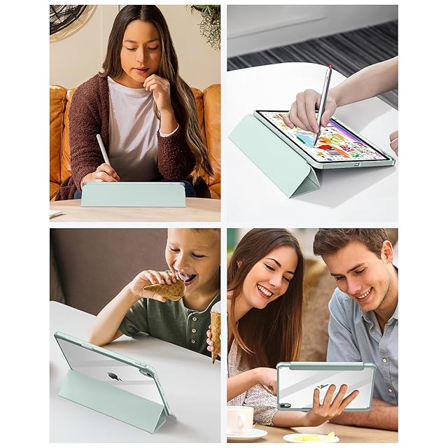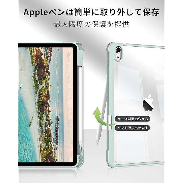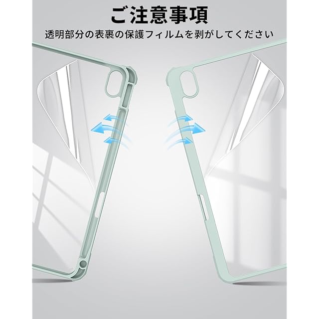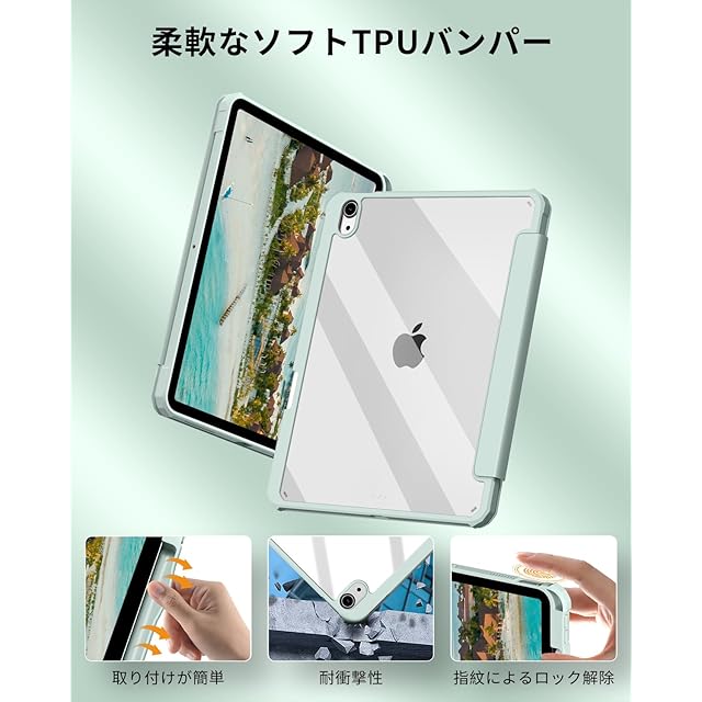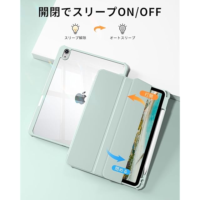 SQBEBS iPad 11世代 ケース A16 (2025) iPad 第11/10世代 10.9インチ (2022) 透明バックカバー ペンシルホルダー付き 三つ折りスタンド Touch IDとオートスリープ機能対応 軽量 薄型 傷つけ防止 PU合成レザー TPU ライトグリーン | TREND DESIGN 家電専門店