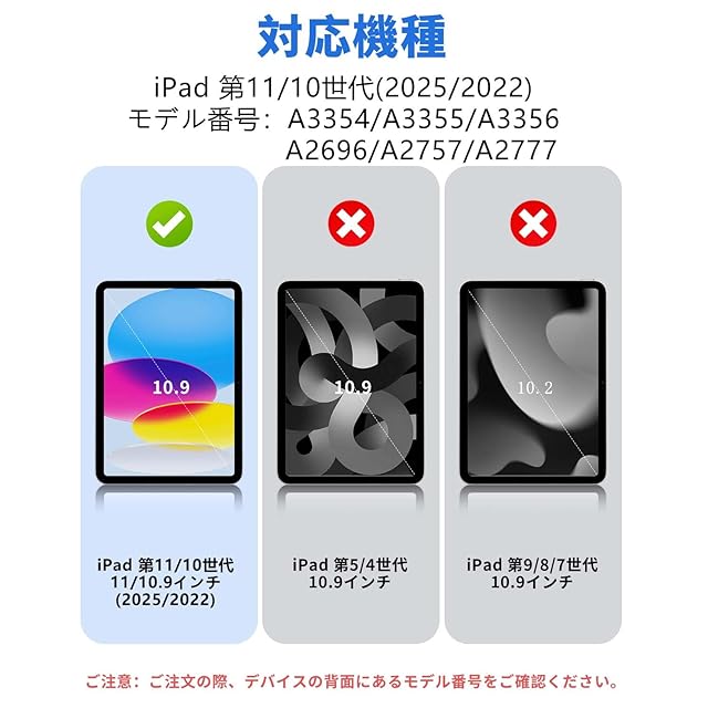 【対応機種】SQBEBS ケース iPad 11世代 (A16) 11インチ 2025 / 第10世代 10.9インチ 2022 に適用します。 (モデル番号:A3354/A3355/A3356/A2696/A2757/A2777)。ご注意:他のiPadモデルとは互換性がありません、ご注文の際、デバイスの背面にあるモデル番号をご確認ください。