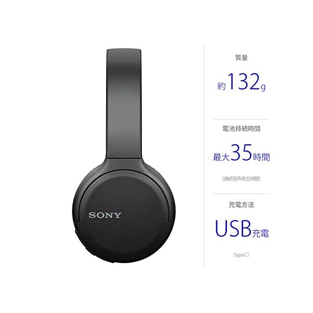 商品名:ソニー ワイヤレスヘッドホン WH-CH510 / bluetooth / AAC対応 / 最大35時間連続再生 2019年モデル / マイク付き /ブラック WH-CH510 B