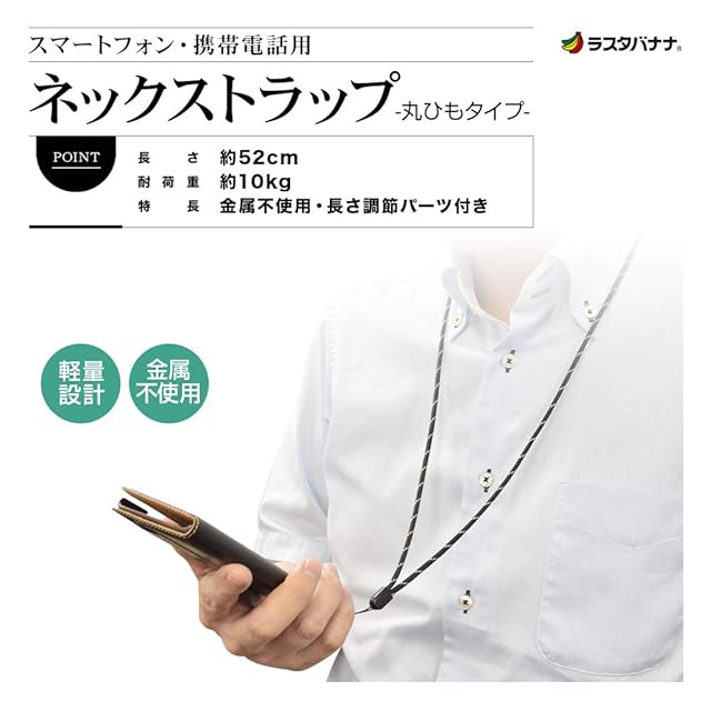商品名:[ラスタバナナ] ネックストラップ 10本セット スマホ 携帯電話 長さ調節パーツ付き 丸ひもタイプ ブラック RNST03BK10