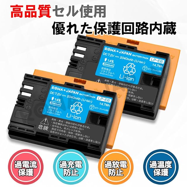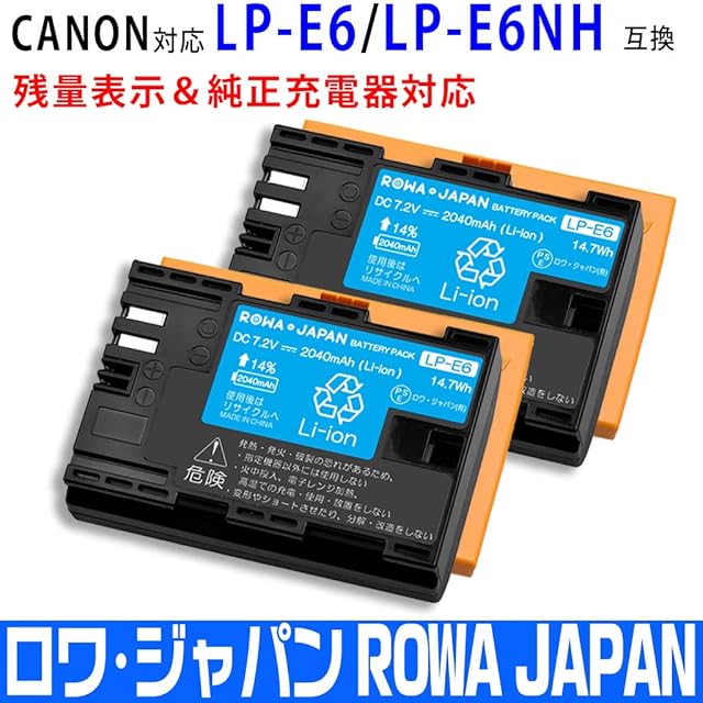 商品名:ロワジャパン【PSE基準検品】LP-E6 LP-E6NH CANON対応 互換 バッテリー【2個セット】残量表示【純正充電器対応】