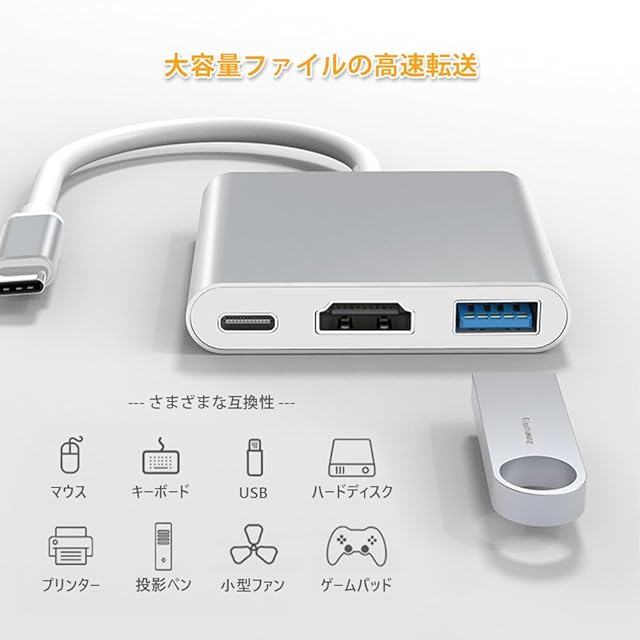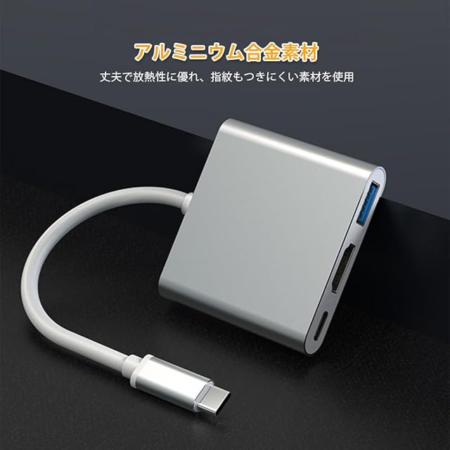 【3in1 Type-C to HDMI 変換アダプター】タイプc to usb 3.0ポート×1、4K HMDI ポート×1、PD充電ポート×1を搭載しています。HDMI対応モニター/プロジェクター/ TVと互換性があり、ビデオおよびオーディオ伝送が可能です