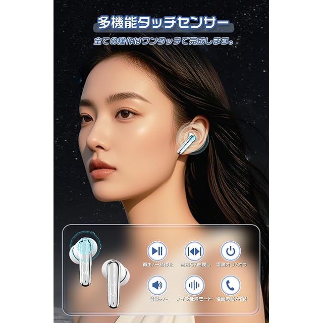 商品名:【臨場感溢れる音質 ANCモード】ワイヤレスイヤホン bluetooth5.4 イヤホン自動ペアリング ブルートゥース イヤホン タッチ操作 Hi-Fi音質 ENCノイズキャンセリングイヤホン 音漏れ抑制 ぶるーとぅーす 低遅延 IPX7防水 マイク付き ハンズフリー通話 イヤフォン Type-C急速充電 左右分離型 快適な装着感 仕事/会議/通勤/通学/音楽/ゲーム/スポーツ