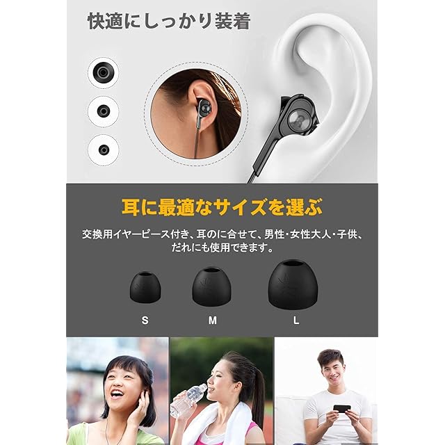 [交換用イヤーピース付属] L・M・S三種類のお椀型イヤーピースが付属しており、自分の耳に最も適したサイズのイヤーピースを選ぶことができます。適切なイヤーピースは音質の優劣に影響し、よりしっかりと耳にフィットして外部のノイズをシャットアウトし、外部への音漏れを減らし、低音域レスポンスを強化し、聞く喜びを高めてくれます。柔らかくてとても快適な肌にもやさしい材質が使用されています!