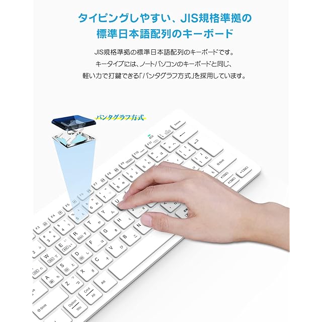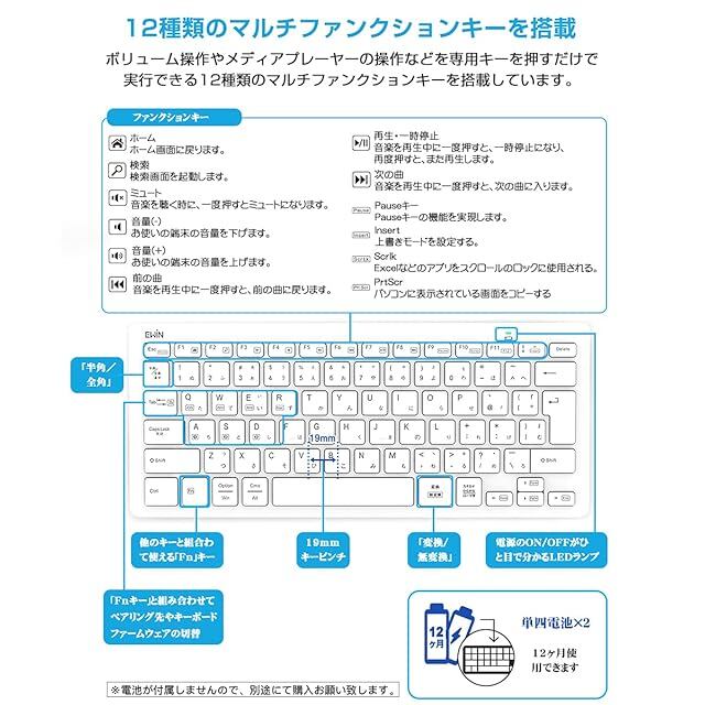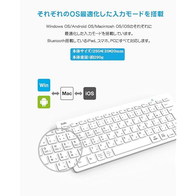 商品名:Ewin キーボード ワイヤレス bluetooth 小型 静音 薄型 軽量 コンパクト 日本語 かな入力 PC ノートパソコン スマホ タブレット Mac ios android Windows など対応 (ホワイト)