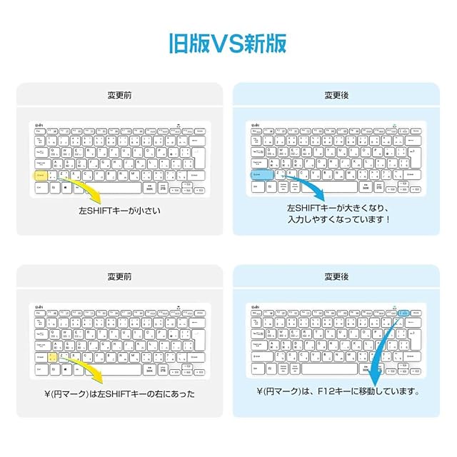 【JIS規格準拠の標準日本語配列のキーボード&マルチファンクションキーを搭載】 JIS規格準拠の標準日本語配列のキーボードで、かな入力が楽らです、もちろん英語入力も使えます。 キータイプには、ノートパソコンのキーボードと同じ、軽い力で打鍵できる「パンタグラフ方式」を採用しています。 ボリューム操作やメディアプレーヤーの操作などを専用キーを押すだけで実行できる12種類のマルチファンクションキーを搭載しています。 コンパクトながら19mmのキーピッチと、日本語80キーを採用し、快適なタイピングが可能です。