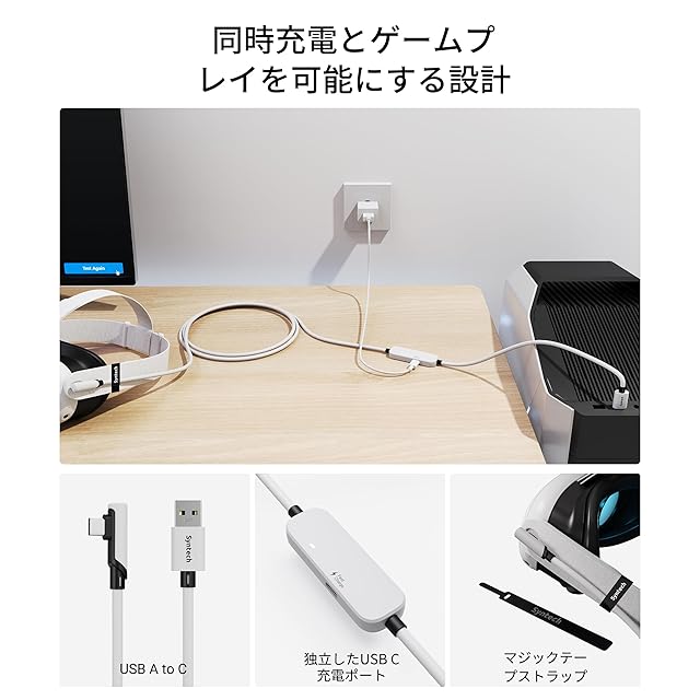 商品名:Syntech リンクケーブル 6M 充電付き、Meta Quest 3S/Quest 3/Quest 2/Pico 4 に対応、別の充電ポート付き VR リンクケーブル、USB 3.0 から Type C コード ライト PC/SteamVR 用