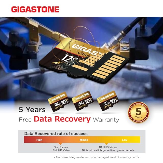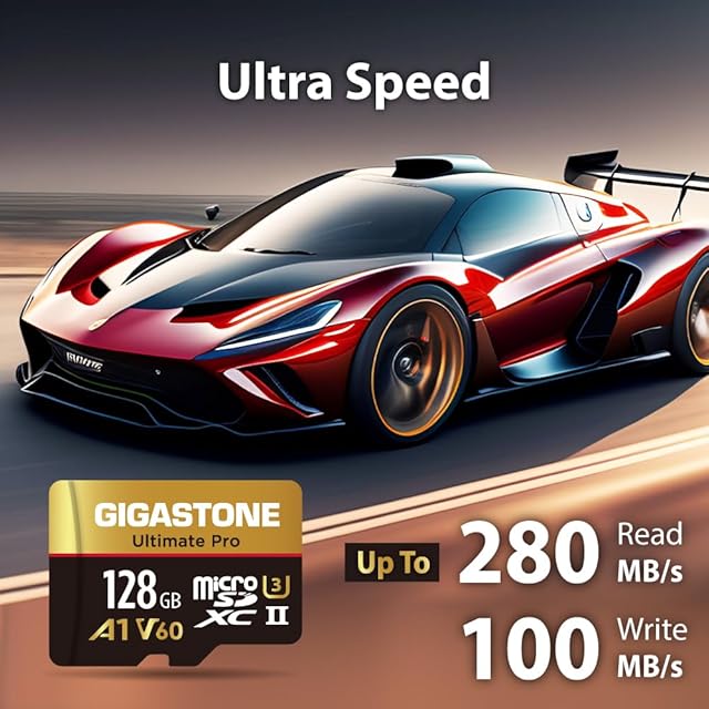 【5年データ回復】Gigastone マイクロsdカード 128GB Ultimate Pro MicroSD 128GB カメラSDカード 転送速度280/100 MB/s, Full HD & 4K UHD撮影, UHS-II U3 A1 V60 Class 10 マイクロsdカード, アダプタ付き
