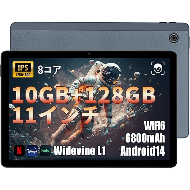 商品名:11インチ タブレット - HiGrace android タブレット wi-fiモデル 10GB+128GB+1TB拡張、6800mAh 8コアCPU 1.8Ghz、Widevine L1+GMS認証+WiFi 6+BT5.2+USB-C+1280*800 IPS 画面 OTG/無線投影/顔認識/説明書付属、オンライン授業