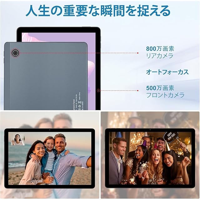 2.4G/5G Wifi+BT 5.3&6800mAh &5MP/8MPカメラ & OTG対応 &分割画面機能 - 2.4Ghz/5Ghz WiFi と Bluetooth 5.2 を搭載しており、どこにいても接続を維持できます。6800mAh大容量バッテリーで、映画やドラマ、音楽鑑賞などを長時間安心してご利用できます。USB C端子のドライバーやスマホから写真・動画・ファイルなどなど転送できます。フロントカメラ( 500万画素)、リアカメラ( 800万画素)でいつでも撮影をお手軽に楽しめます。画面上に2つのアプリを同時に表示する「画面分割」機能が備わって、YouTubeで動画を見ながらTwitterを見ます。お子様がタブレットを使用する量を制御するのに役立ち、お子様が適切に学習し、楽しむのに役立つ便利な方法を保護者に提供します。