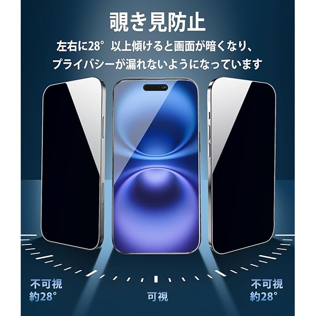 【強化黒縁・1枚が3枚に匹敵】 iphone16用 覗き見フィルムは、硬度9Hを超える強化ガラスを採用し、極細黒縁は曲線に沿って全画面をカバーします。強化設計により落下や衝撃によるフチ割れや損傷を全力防ぎます。OAproda製の保護フィルム、1枚で3枚分に匹敵する卓越した耐衝撃性と耐傷性を持ち、スクリーン保護と絶対的な安心感を提供します。