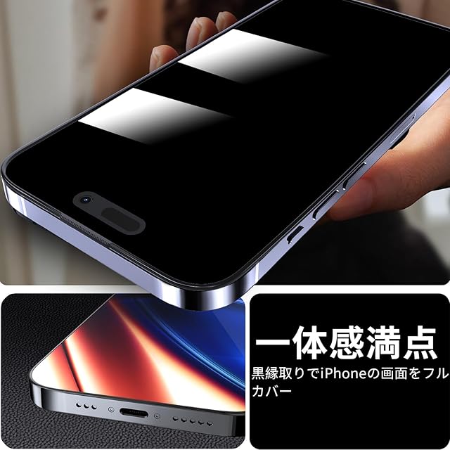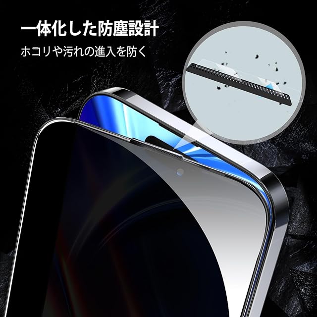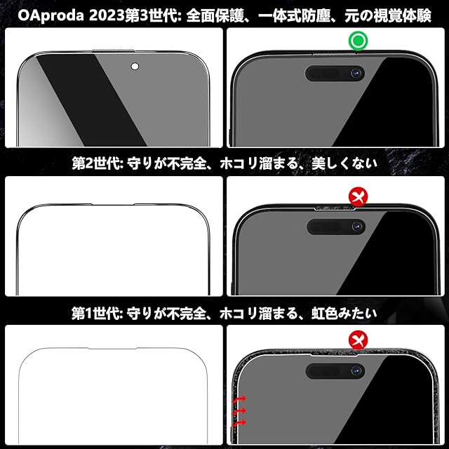 商品名:【1枚が3枚に匹敵・防塵一体式設計】 OAproda 覗き見防止 ガラスフィルム iPhone 15 Pro Max 用 全面保護 硬度が9Hを超え 強化黒縁 ガイド枠付き iPhone15 Pro Max 対応 6.7インチ【宇宙航空材料・貼り付け簡単】