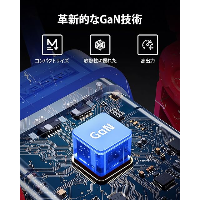 【革新的なGaN技術採用】最先端の窒化ガリウム(GaN)技術を採用することで、高出力ながらコンパクトなサイズを実現。GaNは熱伝導性に優れており、充電中でも本体がほとんど熱を持たず、安全性にも配慮されています。従来のシリコン製充電器に比べて、約1~2サイズ小型化されており、ハイパワーでありながら設置スペースを取らず、持ち運びにも最適です。