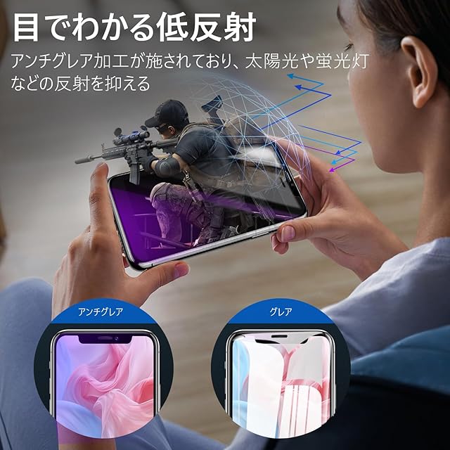 商品名:【ブルーライトカット + アンチグレア/2枚セット】 iPhone 11 Pro ガラスフィルム ブルーライト さらさら いPhone Xs フィルム ブルーライトカット サラサラ アイフォン11Pro 保護フィルム 指紋防止 いpほね11Pro ガラスフィルム 反射防止