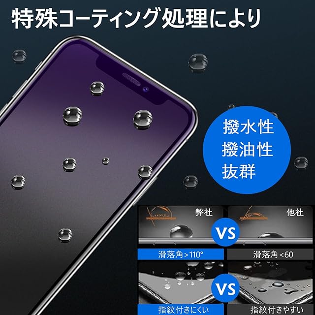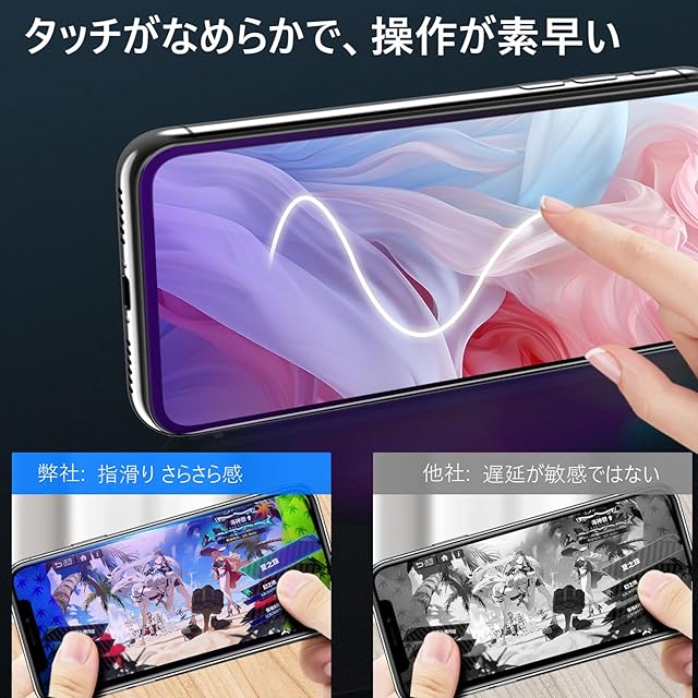 【アンチグレア・指紋防止・高感度タッチ】アンチグレア(非光沢)タイプのさらさらで快適な操作感。光の反射を軽減し、より目に優しくちらつきを抑えます。同時に、iPhone Xs ガラスフィルム には撥油コーティングが施されており、指紋が目立ちにくくなって、付着した汚れなどは簡単に拭きとれます。さらさら質感で指滑りもよく、長時間の作業、ゲームなどに最適。