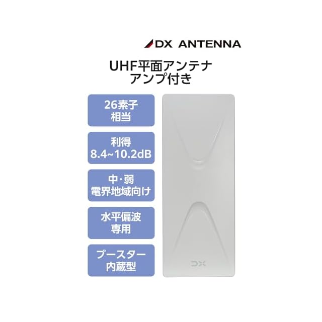 商品名:DXアンテナ アンテナ 地上デジタルアンテナ (ブースター内蔵) UHF 壁面(26素子相当) オールチャンネル(13ch.~52ch.)対応 小型 簡単に組み立て 中・弱電界地域向け EC-FA26A