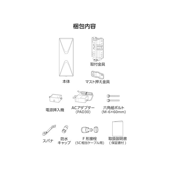 ブースター内蔵。本体背面上部に混合器・分配器などを取付ることができて見た目もスッキリ。