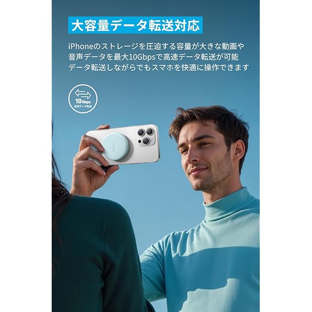 大容量データ転送対応:iPhoneのストレージを圧迫する容量が大きな動画や音声データを最大10Gbpsで高速データ転送が可能で、データ転送しながらでもスマホを快適に操作できます。