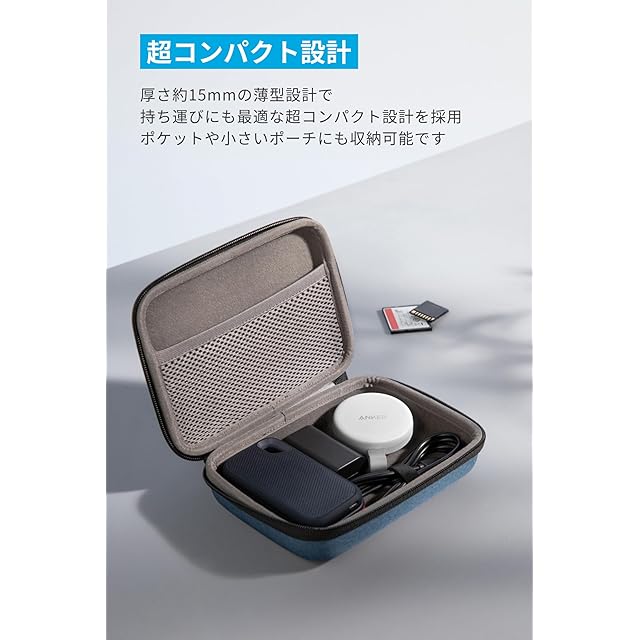 超コンパクト設計:厚さ約15mmの薄型かつ持ち運びにも最適な超コンパクト設計を採用で、ポケットや小さいポーチにも収納可能です。